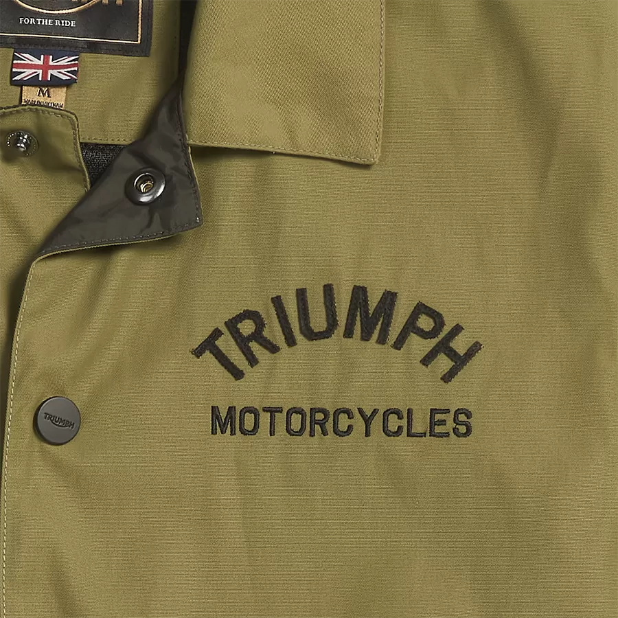 Clean, lightweight and dependable, the Carter Coach Jacket is any riders staple casual classic layering piece. Ideal for unpredictable summer days and cooler evenings. Featuring front pockets, popper fastening and Triumph Motorcycles branding on the chest and large arched lettering on the back. Material: 59% nylon / 41% cotton.