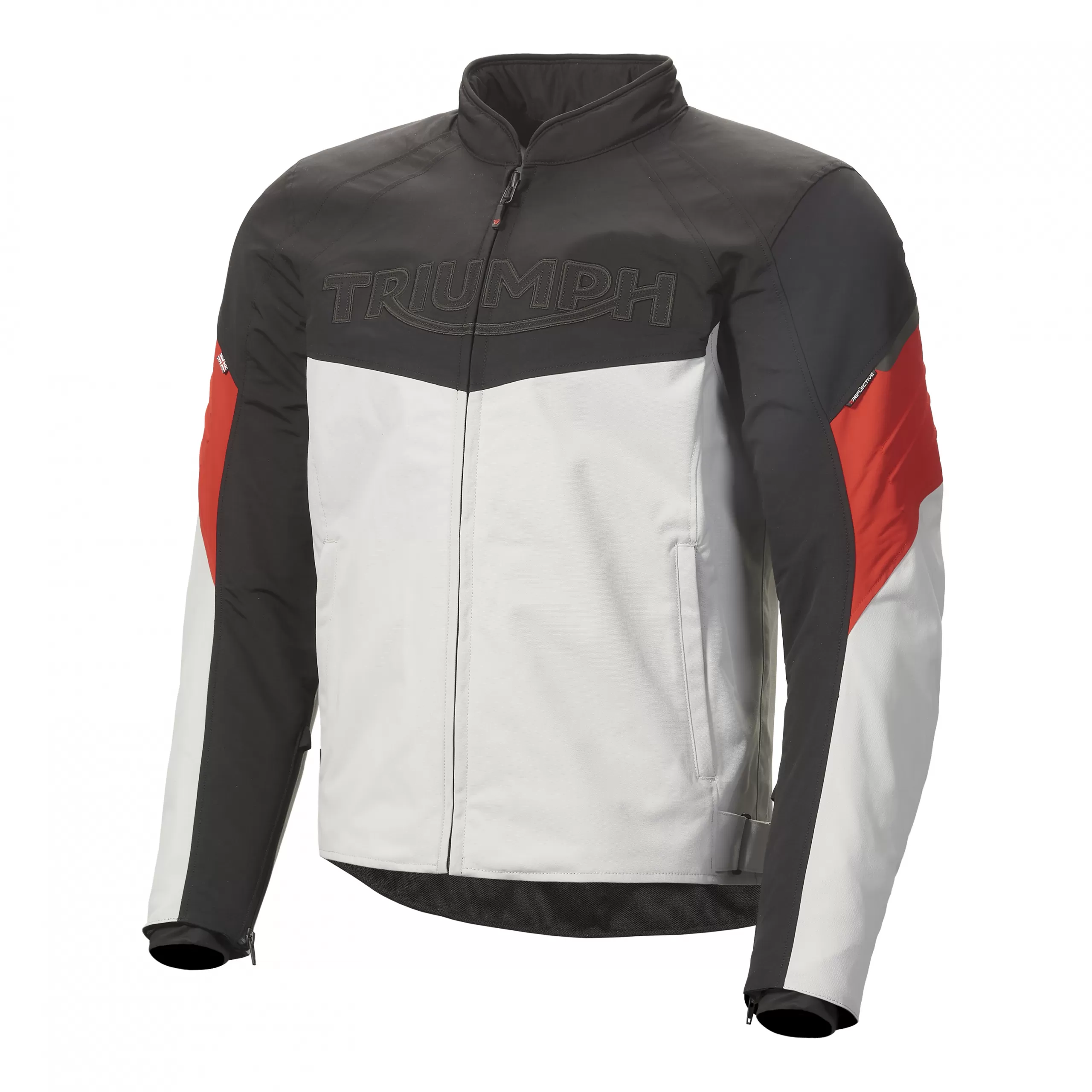 The Triumph Triple Roadster Jacket in the eye-catching Black / Grey / Red colourway is a versatile and stylish addition to your riding gear collection. Perfectly designed for urban environments, this roadster-style jacket combines aesthetics with functionality to deliver a superior riding experience.