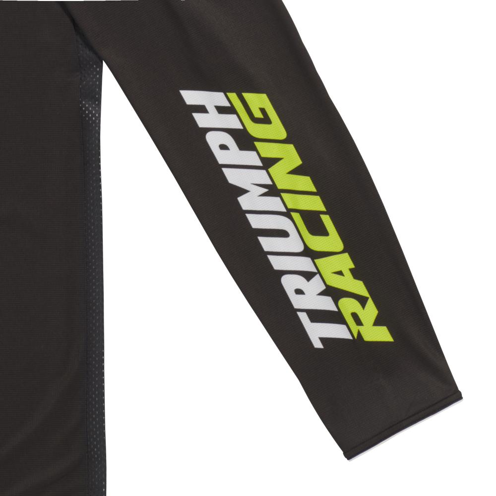 Our off-road jerseys are constructed from ultra-light advanced polyester stretch mesh, with shaped back panel for a secure and comfortable fit. Each jersey features bold Triumph Racing branding and the iconic fluorescent yellow, black and white colour scheme.